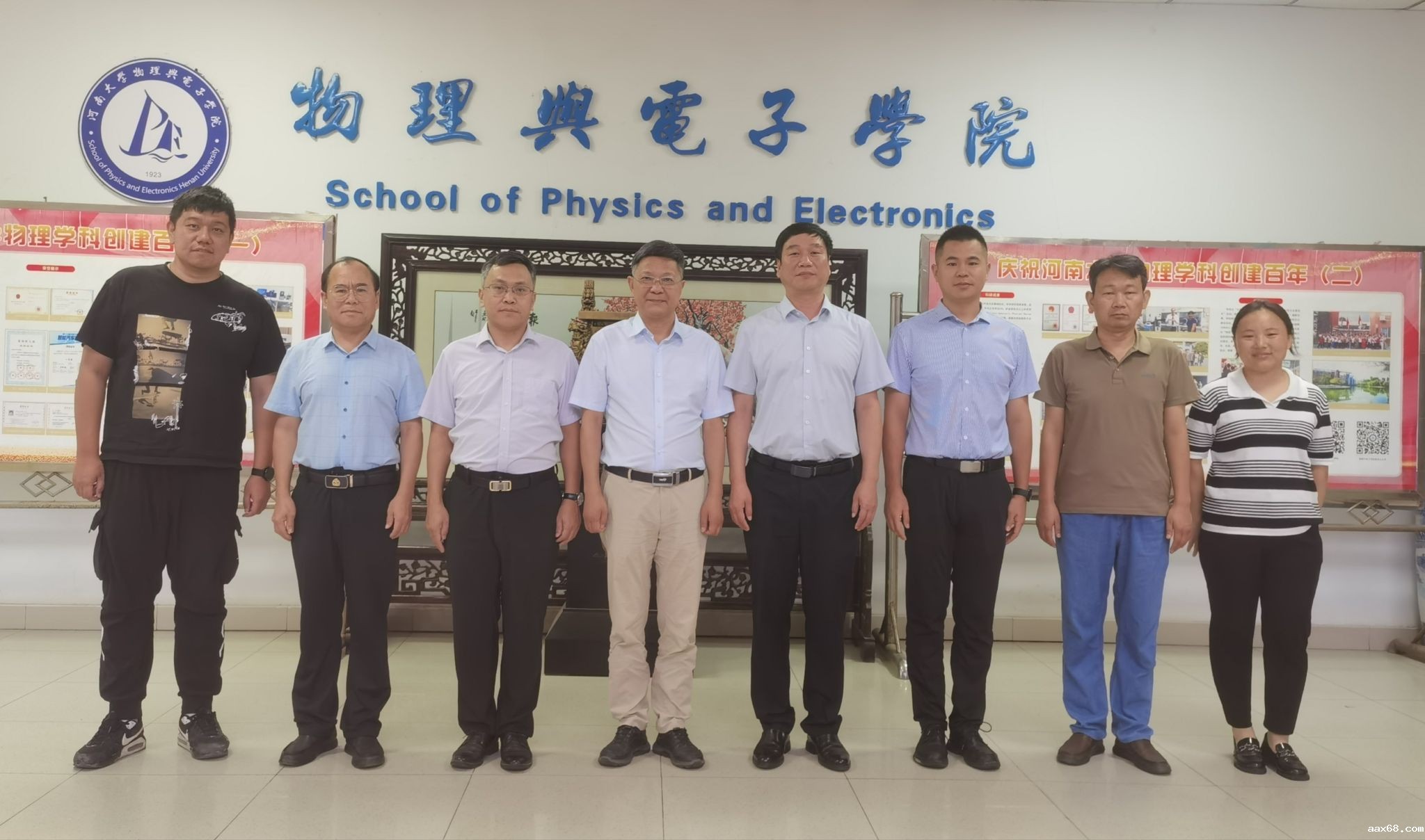7月19日下午,扬州大学物理科学与技术学院党委书记王春雨、副书记毕瑜林一行3人来访我院,并在学院A311会议室召开座谈会。我院党委书记张慧、执行院长李国强、党委副书记刘寒冰、副院长李新营、研究生辅导员周焕参加座谈。