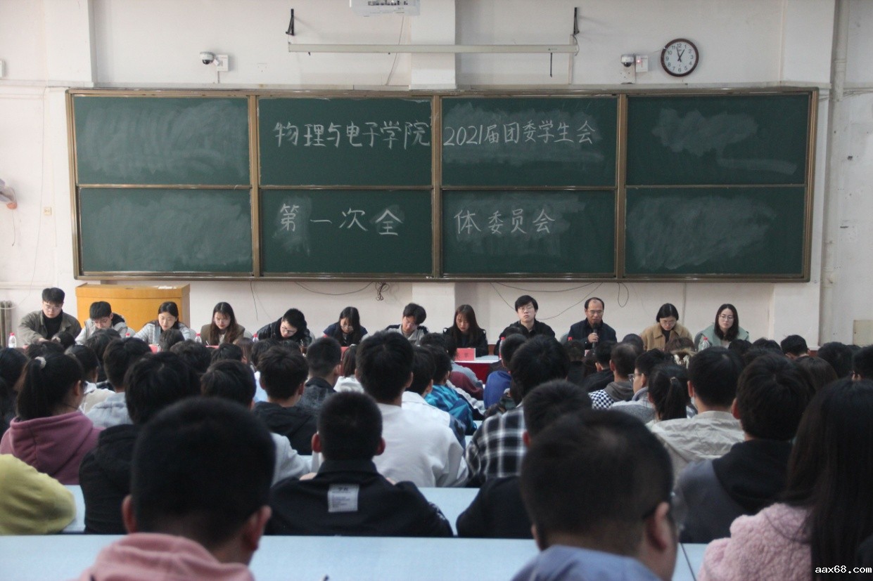 为认真贯彻落实物理与电子学院团委学生会工作部署,10月28日下午,我院在金明校区综合楼1203教室召开以“构建团结协作学生会”为主题的2021届团委学生会第一次全体委员会。出席会议的有党委副书记刘寒冰、团委副书记姚星宇、学生会全体成员。