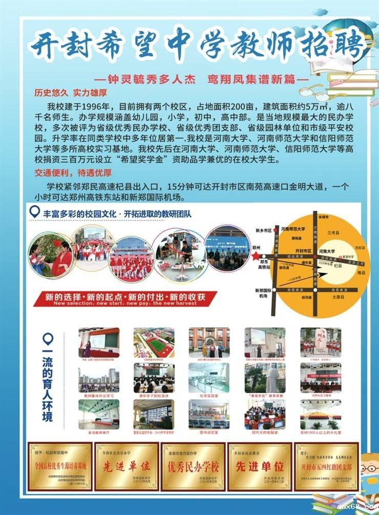 开封希望中学招聘教师