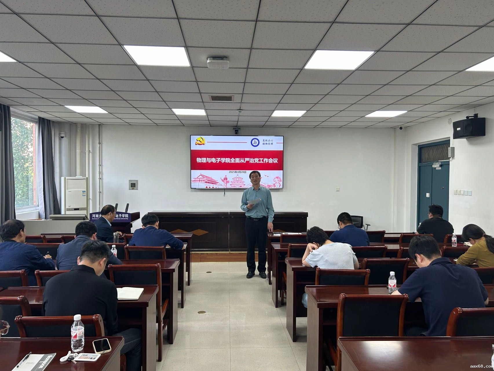 4月29日,物理与电子学院在A313会议室召开全面从严治党工作会议。学院党委委员、班子成员、各党支部书记、各系室科室中心主任参加会议。会议由学院党委副书记刘寒冰主持。