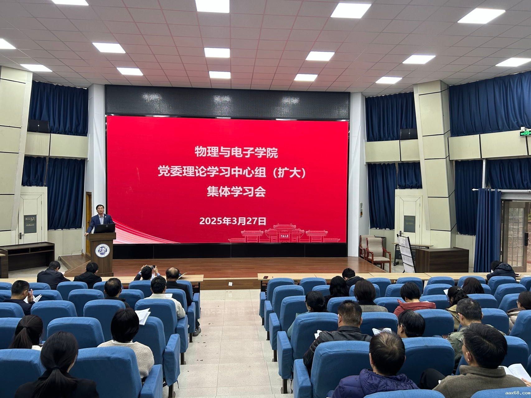3月27日,物理与电子学院召开党委理论中心组(扩大)集体学习会议,专题传达学习贯彻习近平总书记重要讲话精神和全国两会精神。学院全体教职工参加会议,会议由执行院长李国强主持。