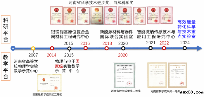 近年来,物理与电子学院科研能力迅速提升,科研成果丰硕。5年间获批国家自然科学基金项目、省部级项目130余项,承担横向课题100余项,累计到账科研经费共计5000余万元。发表高水平论文600余篇,其中在《Nature Photinics》《Nature Communications》《Physical Review Letters》《PNAS》顶级期刊50余篇。授权国家发明专利114项。获得省部级以上科研奖励10项,其中二等奖2项。获批西部地区人才培养特别项目、地方合作项目地方创新子项目,获河南省高等学校学科创新引智基地1个、河南省杰出外籍科学家工作室3个、河南省外国高端专家引进项目2项。