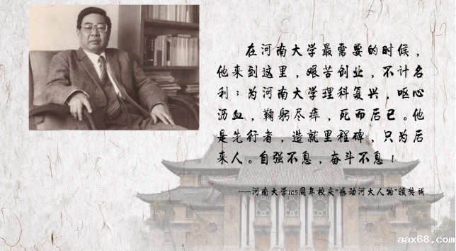 朱自强(1934~1995),原河南大学物理系主任,物理学家,国家有突出贡献专家、国务院政府特殊津贴专家。1985年底作为学科带头人调入河南大学,在短期内创建了固体表面研究室,使河南大学理科科研步入新的阶段;建立了河南大学第一个物理学硕士点,确立了物理学科的发展方向,为河南大学物理学科及实验室建设与发展奠定了基础。他是国内最早从事LB膜研究的专家之一,也是国际分子膜研究领域的知名学者。他所开创的事业在河南大学理科发展中具有里程碑式的意义。 |